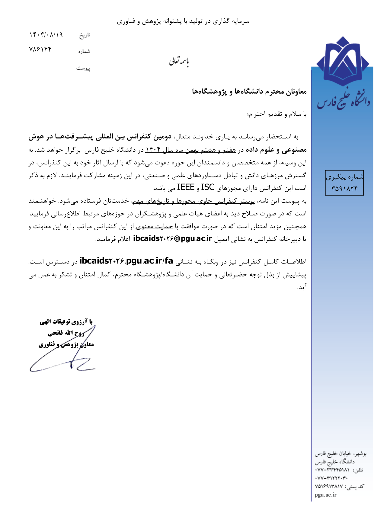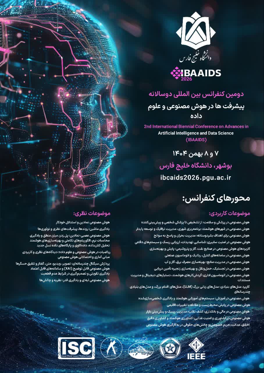 فراخوان دومین کنفرانس بین المللی دو سالانه پیشرفت ها در هوش مصنوعی و علوم داده -دانشگاه خلیج فارس تاریخ : ۲۰ آبان ۱۴۰۴ /file/download/calendar/1762835707-6912bcfb93915-3-1-.png /file/download/calendar/1762835722-6912bd0a53a36-5.jpg